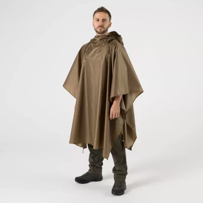 Непромокаемая накидка от дождя, которая может трансформироваться в укрытие, изготовлена из прочного на разрыв полиэстера rip-stop. Это улучшенная, облегченная версия нашей модели Poncho US. Стандартное американское пончо имеет почти 60-летнюю традицию и до сих пор хорошо работает, но при создании легкого пончо мы удалили различные конструктивные детали, оставив только самые необходимые. Заменив металлические проушины на петли из прочной тесьмы, мы уменьшили вес и габариты накидки в сложенном виде, сохранив при этом ее полный размер в развернутом виде.Накидка застегивается на две кнопки, которые позволяют сделать рукава так, чтобы они не задирались при ношении на теле. Новый тип капюшона оснащен практичным регулятором на завязках, который работает намного лучше, чем оригинальный. Легкое пончо в сложенном виде можно упаковать в прилагаемую сумку для переноски. Все места крепления усилены специальной тканью, устойчивой к разрывам.