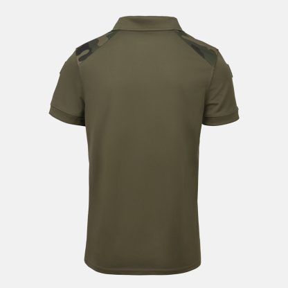 Наша рубашка-поло украшена вставками в стиле лесного камуфляжа на плечах, что делает ее подходящей для полевой формы. Кроме того, рубашка дополнена вставками с застежками-крючками: двумя на рукавах (для национальных знаков различия) и двумя на груди (для нашивок в виде званий и именных жетонов). Планка на пуговицах дополнена практичной петлей для крепления солнцезащитных очков.