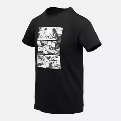 Иногда все может измениться в мгновение ока. Принт “Свидание в бою” рассказывает эту историю с изюминкой: тихий романтический ужин разворачивается на трех панелях в стиле комиксов.… и внезапно превращается в настоящую перестрелку. Это ироничная графика – беззаботная, но основанная на тактическом мышлении: всегда будь готов.