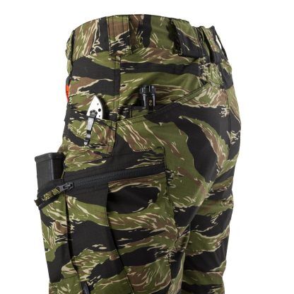 Благодаря продуманному расположению карманов снаряжение можно разместить ближе к центру тяжести, вокруг бедер и талии. Края передних и задних карманов усилены, чтобы выдерживать постоянное перемещение зажимов для света или ножей. Два передних кармана, закрывающихся на липучки, достаточно велики, чтобы вместить смартфон или даже магазин для винтовки AR / AK. Набедренные карманы на молнии выглядят плоскими, но их конструкция позволяет с легкостью носить сумки или кошельки. Внутренние карманы, изготовленные на заказ, ожидают своего наполнения низкопрофильными защитными накладками . Три типа ткани плюс широкий выбор расцветок позволяют сочетать брюки с остальным гардеробом или условиями работы.